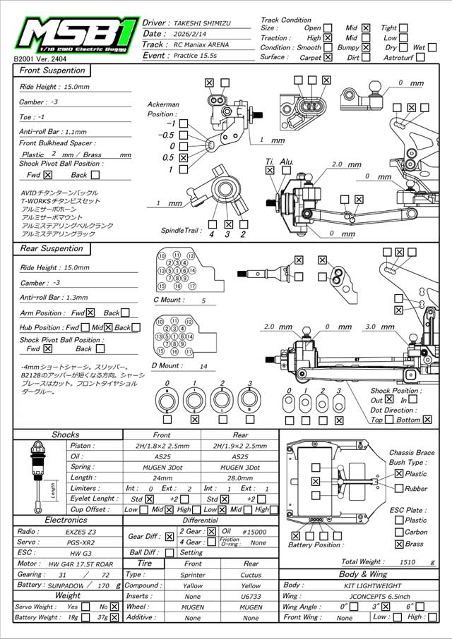 ※とりあえずはなんとかなりそうなので、このセットでヨコモチャレンジカップに挑む予定です。