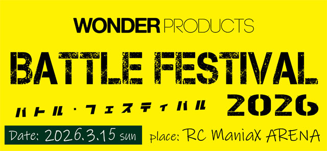 ・3月15日(日):Wonder Products Battle Festival 2026(2WDオープン&17.5T&21.5T、リヤモーター、ビンテージ2WDの5クラス予定):(告知)